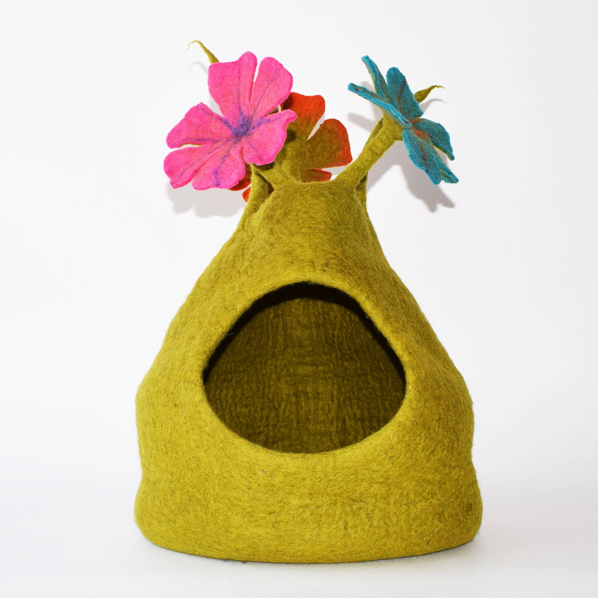 Original design since 2013: we set the standard for wool pet beds and toys made in Nepal. Dharma Dog and Karma Cat designed and created the first wool pet caves made in Nepal, and are the largest producer of them in the country.