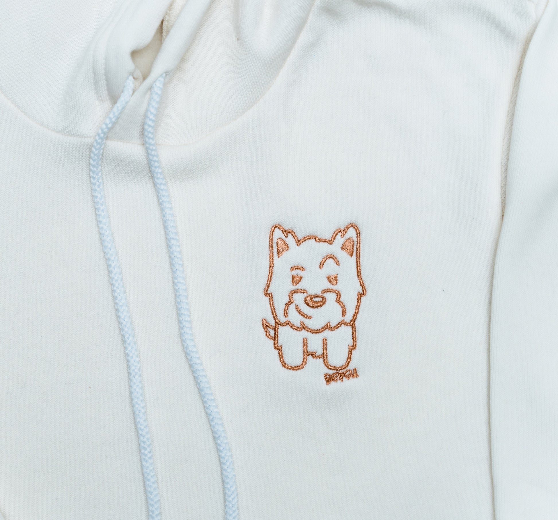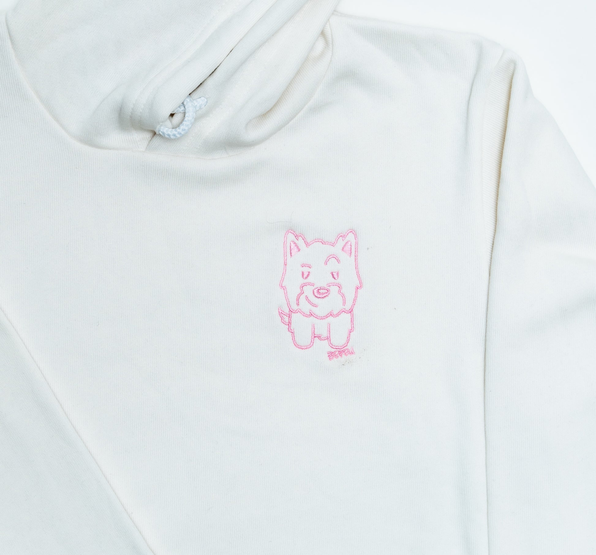 - hood with white cord drawstring